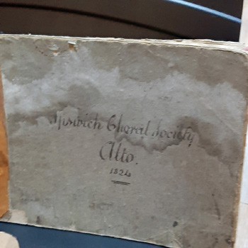 Thanks to a National Lottery Heritage grant a few years ago, Ipswich Choral Society was able to research the history of the choir. Searching archives, a rather special, hand-written book of scores, with the inscription “Ipswich Choral Society, Alto 1824” was uncovered. The hand-written music was excerpts from Haydn’s ‘The Creation’ which was then performed in public by the newly formed society the following year.